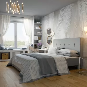К преимуществам кровати «Сириус» можно отнести красивое объемное изголовье, которое придает модели стильный и современный вид. Модель сконструирована так, чтобы спинку можно было придвинуть вплотную к стене, плинтус на полу не будет помехой. Просвет под кроватью подходит для любых моделей роботов-пылесосов. Кроме этого, кровать укомплектована стальной рамой по всему периметру основания и усиленными ножками диаметром 50 мм.