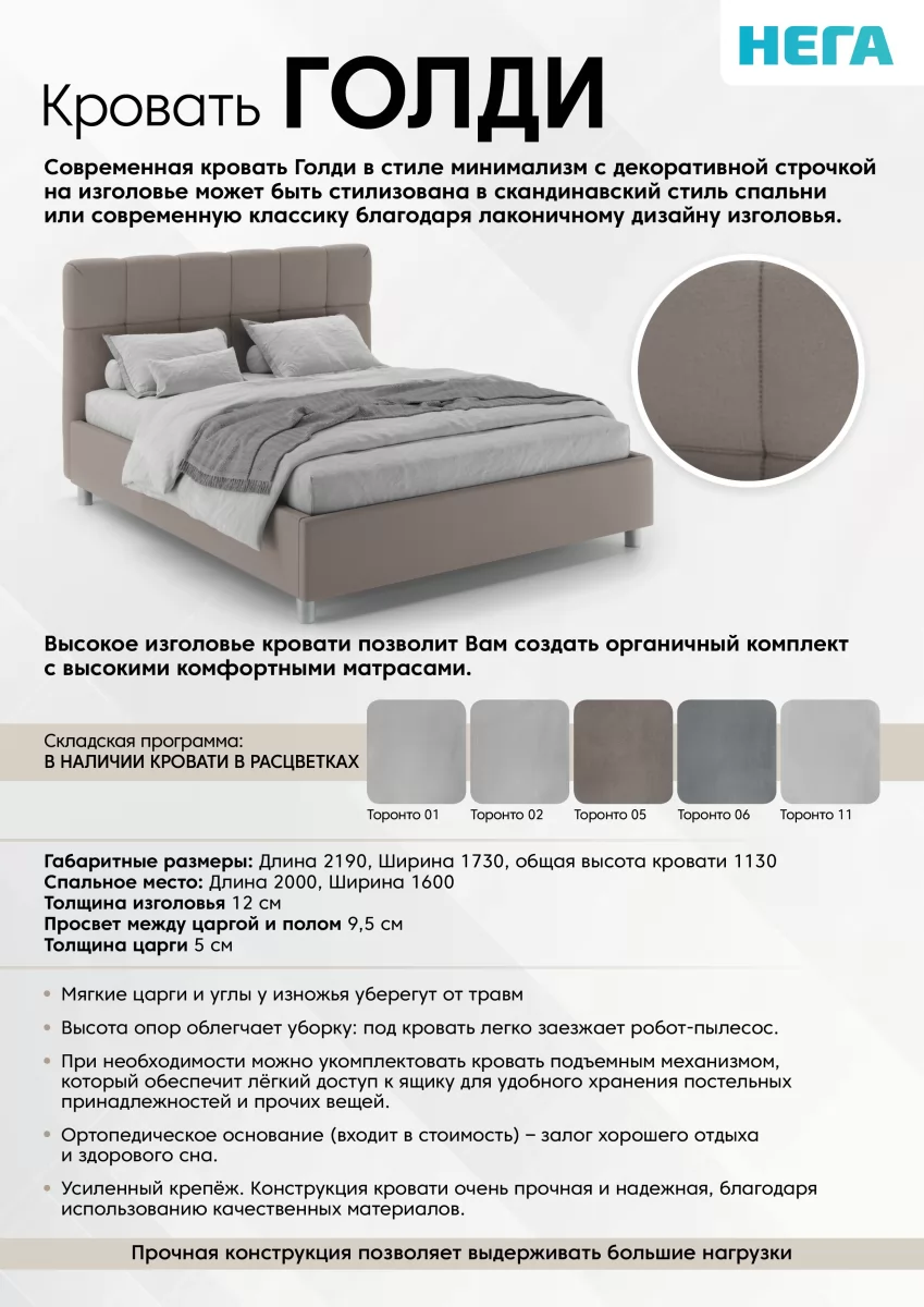 Кровать с подъемным механизмом Голди 1800*1900/2000 Торонто 11