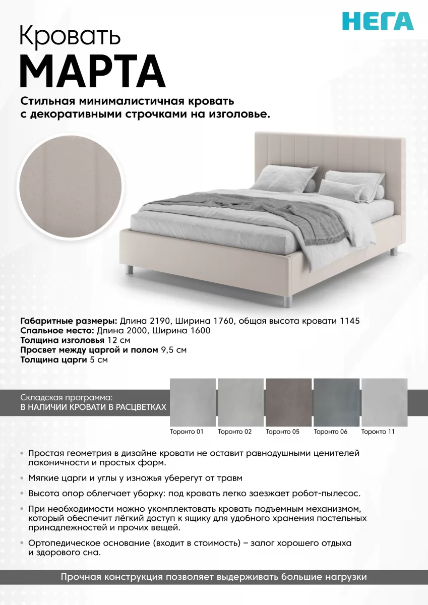 Кровать с подъемным механизмом Марта 1800*1900/2000 Торонто 11 в Советском