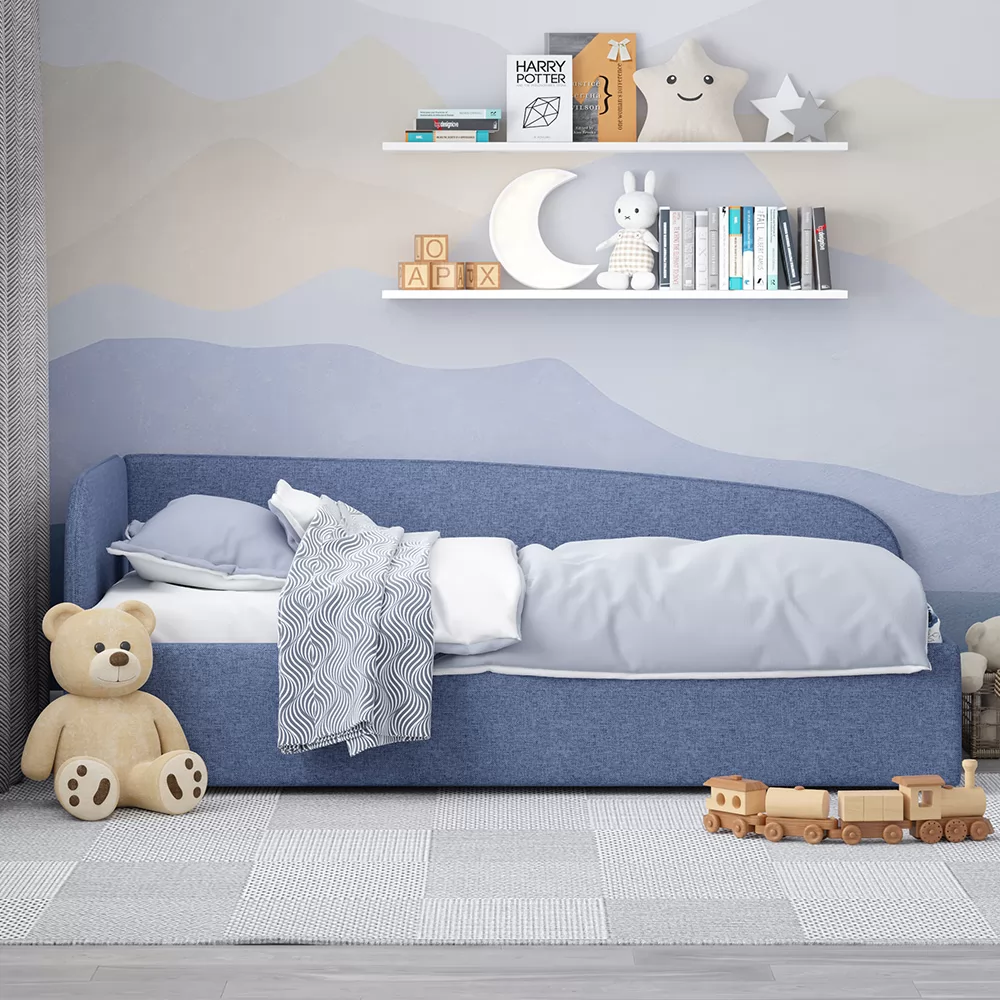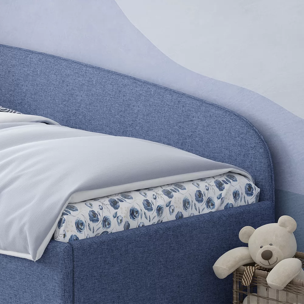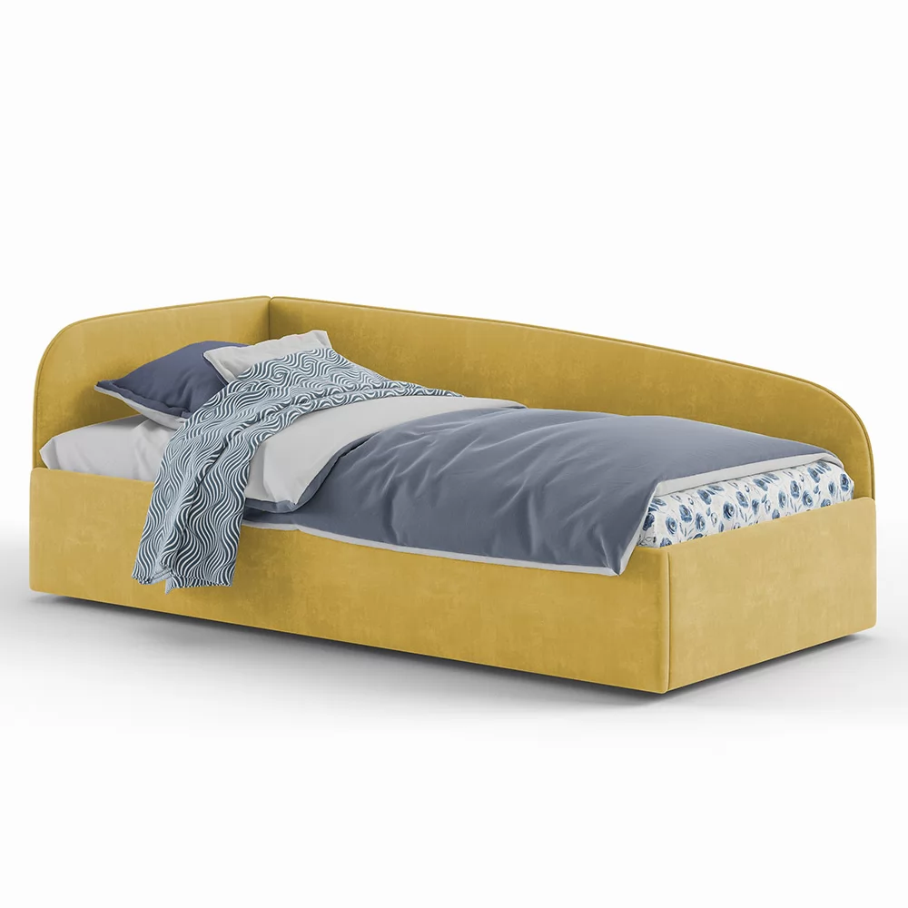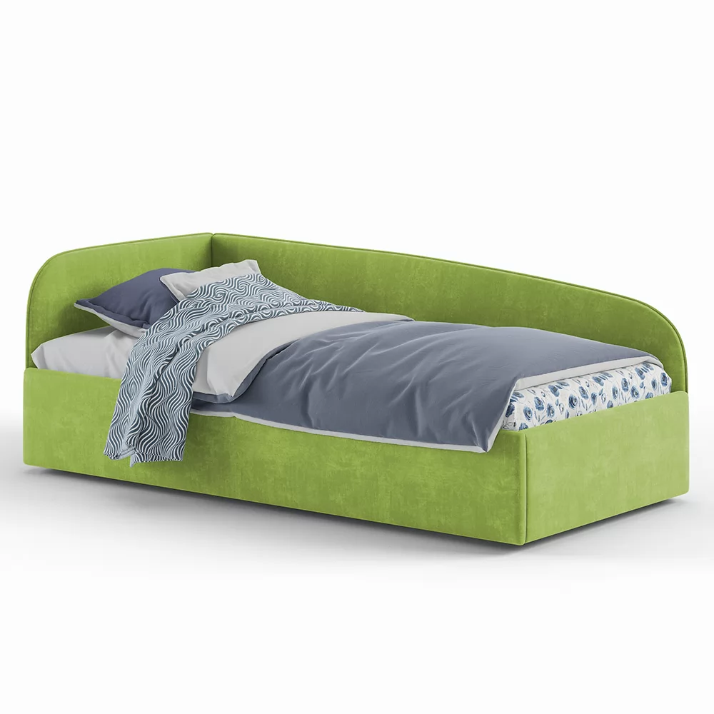 Кровать с универсальной малой спинкой, которую можно установить справа или слева. Обратите внимание, что кровать в базовой комплектации идет с логотипированной универсальной спинкой.