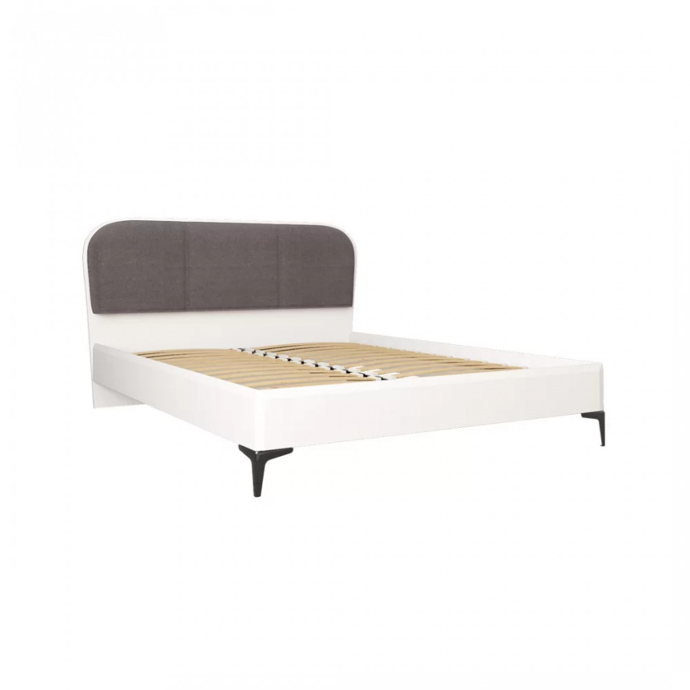 Кровать установлена на высокие ножки, что делает конструкцию лёгкой и воздушной, изголовье кровати декорировано пышным мягким элементом. Матрас укладывается на ортопедическое основание с гнутоклееными ламелями.