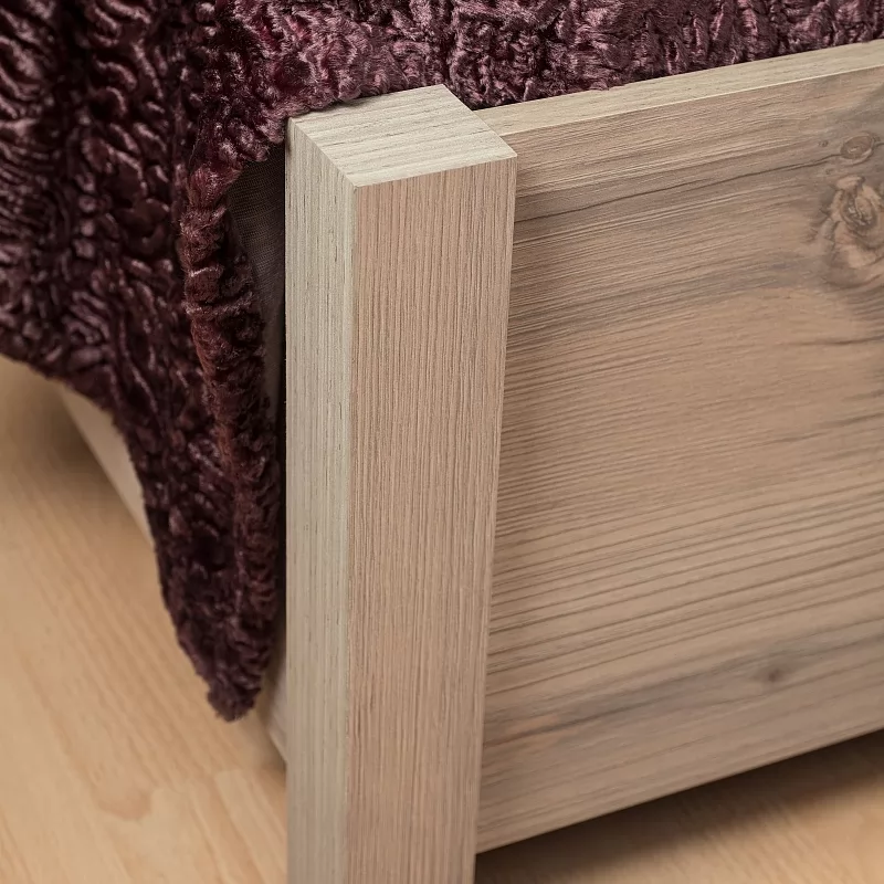 Двуспальная кровать NATURE станет стильным дополнением для вашей спальни. Спокойный приятный древесный декор поможет создать атмосферу настоящего уюта и комфорта в комнате. А контрастные черные вставки из ЛДСП и декоративные золотые нити на черной экокоже сделают изголовье кровати интересным и современным. Экокожа очень легко чистится и не выгорает под воздействием солнечных лучей.