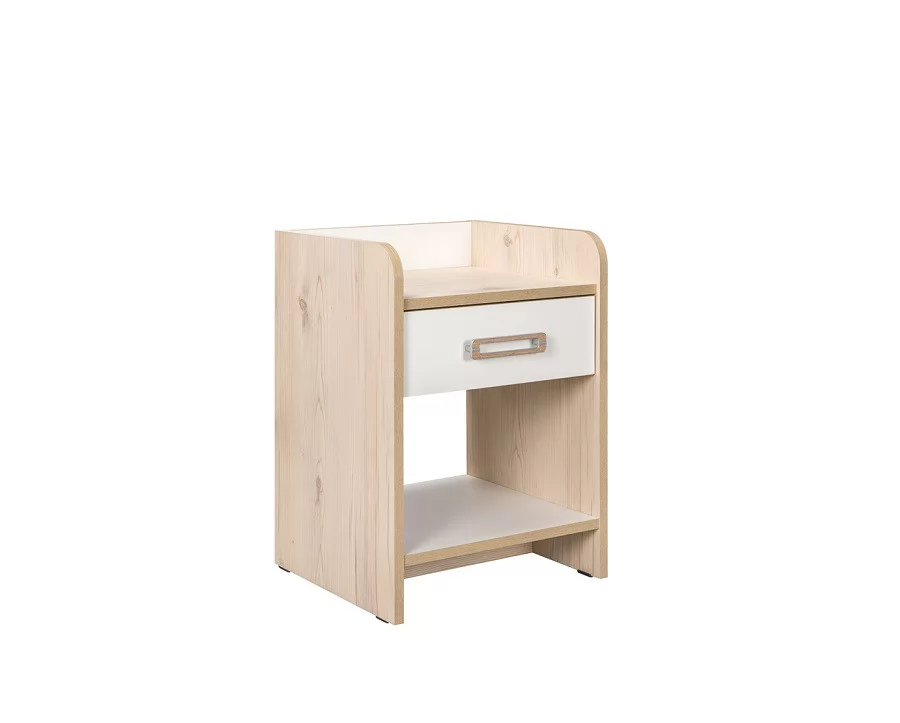Безопасная тумба скругленными углами, где удобно поставить светильник или положить книгу. Имеется ящик для необходимых мелочей на бесшумной направляющей, полного открывания.