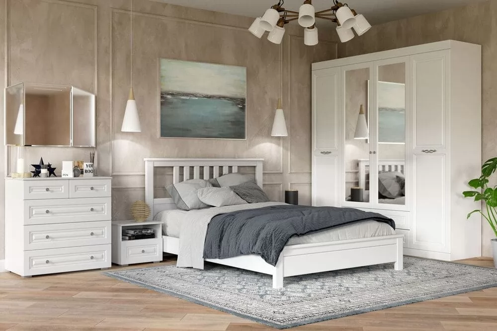 Геометричность гарнитура Олимп позволяет вписать его в любое помещение, а белые оттенки сделают комнату просторной и светлой. Идеально для тех, кто любит классические линии, уникальные текстуры, простоту и изящество.
