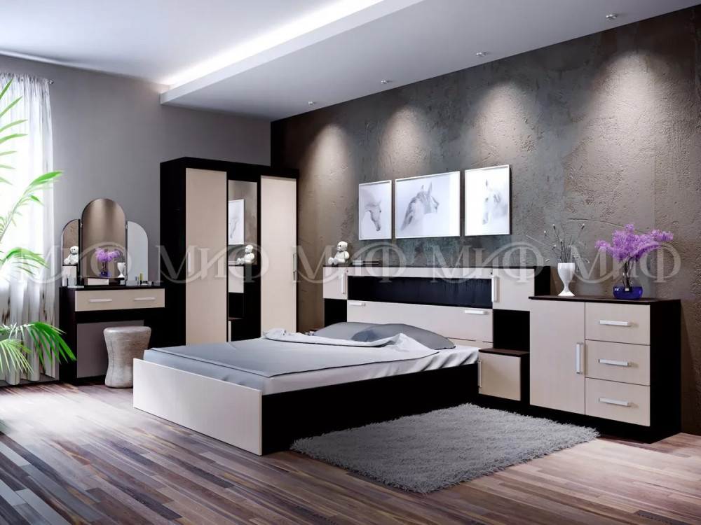 Спальный гарнитур Басямиф, дуб беленый/венге в Советском