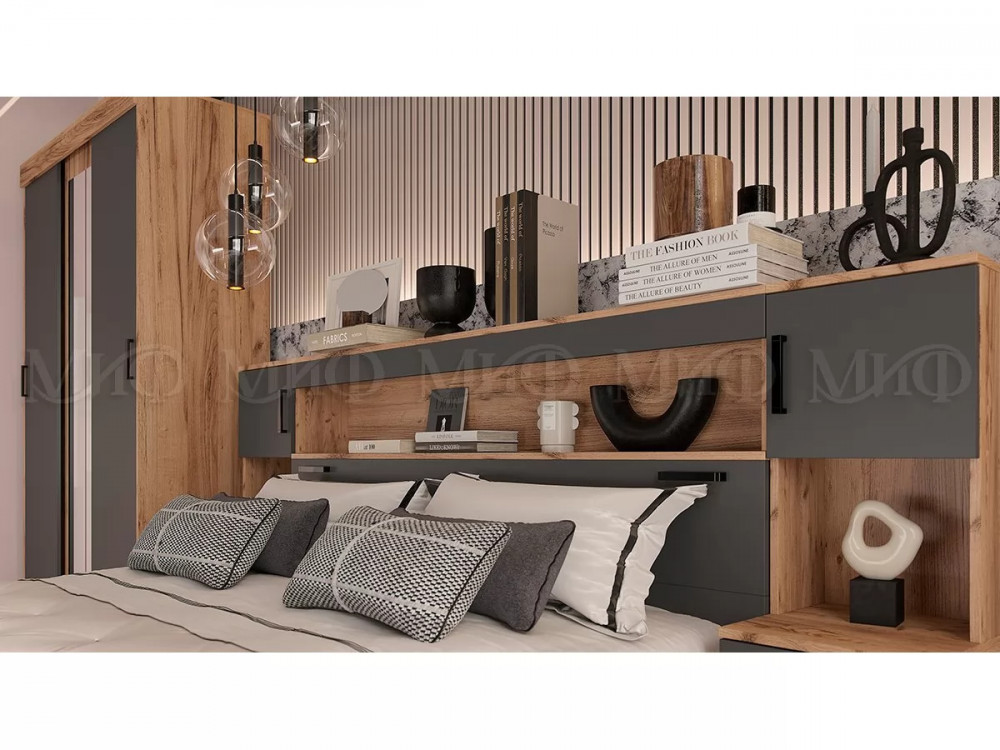 Спальный гарнитур Басямиф, графит/дуб крафт в Советском