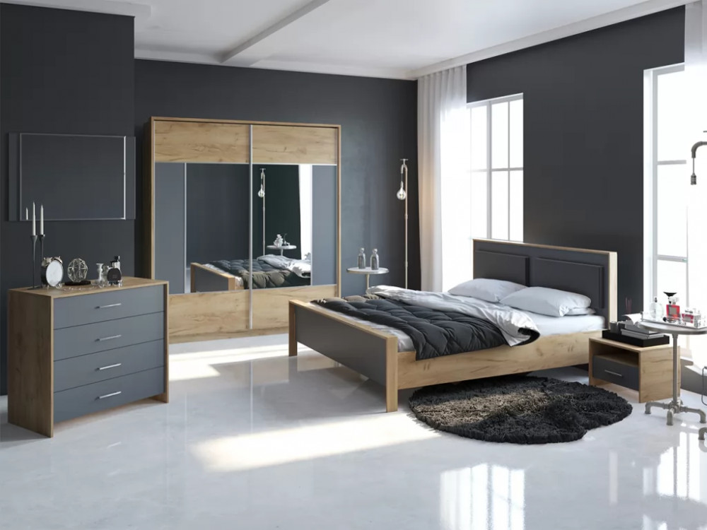 Спальный гарнитур Либерти Дуб крафт золотой/Антрацит в Советском