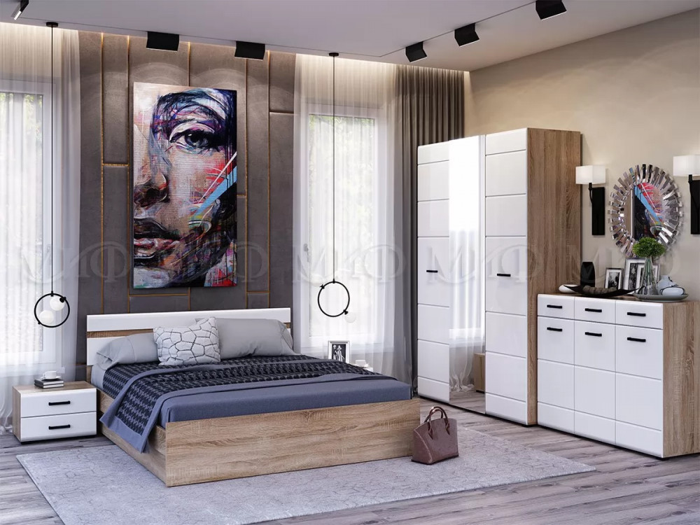 Спальный гарнитур Нэнси New МДФ Белый глянец холодный-Сонома в Советском