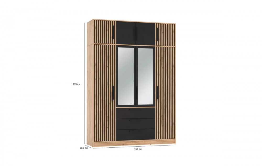 Шкаф для одежды 83.07 Вегас (4-х дв.) с зеркалом (Дуб золотой/черный) 1 шт.