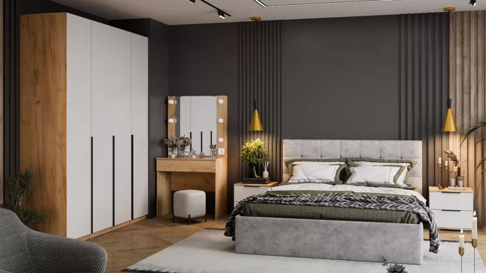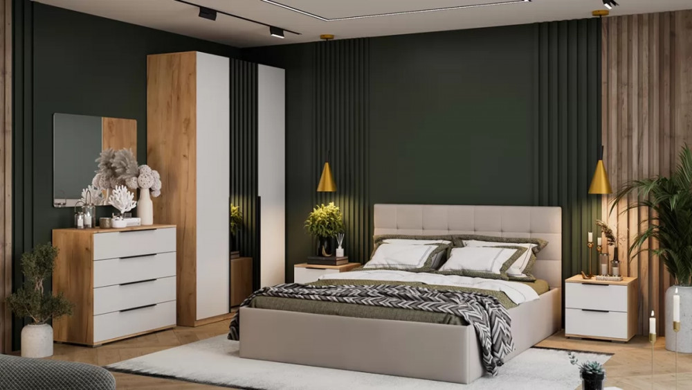 Назначение: Мебель для хранения Комната использования: Спальня Материал кромки каркаса: ПВХ Стиль: Современный Тип: Модульная спальня Тип направляющих ящиков: Шариковые Материал каркаса: ЛДСП Направление открытия двери: Определяется при сборке Материал ручек: Металл Производство: Россия Модель: Джоли Материал фасада: ЛДСП, стекло Цвет: Дуб Крафт золотой, Белый матовый Цвет каркаса: Дуб Крафт золотой Цвет фасада: Белый матовый Оттенок каркаса: Коричневый Оттенок фасада: Белый Наличие механизма раскладки: Нет Наличие спального места: Нет