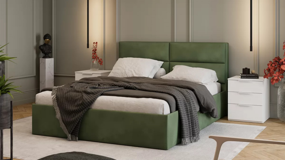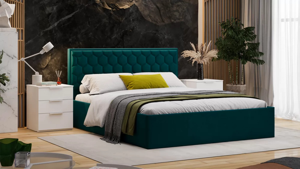 Кровать с ПМ «Порто» (с подъемным механизмом) с заглушиной Велюр Confetti Izumrud