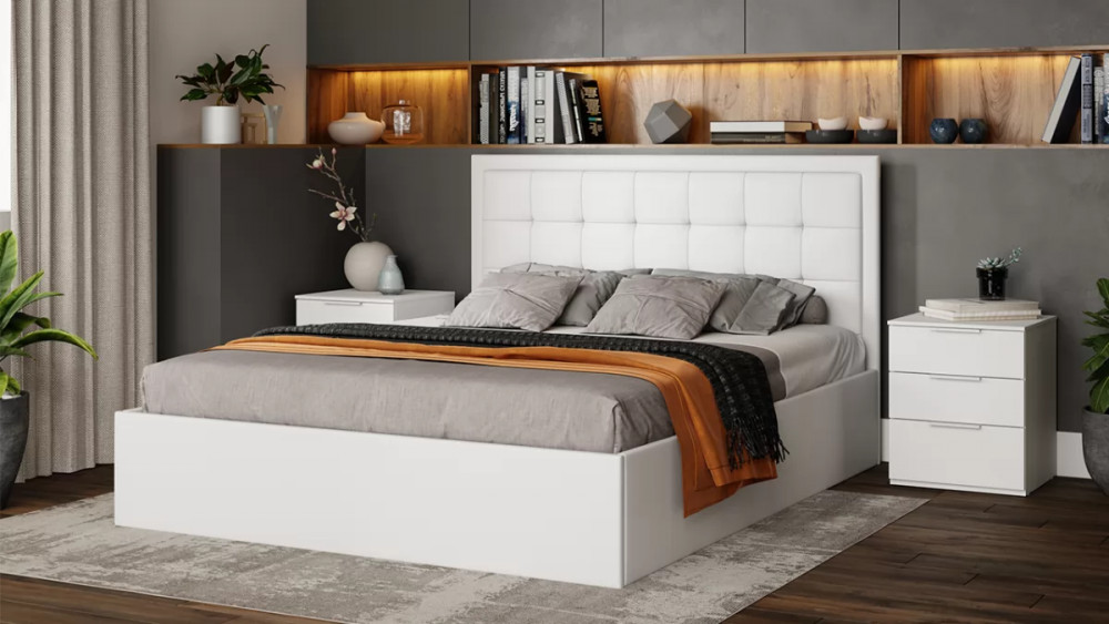 Кровать с ПМ «Порто» (с подъемным механизмом) с заглушиной Экокожа белая Polo