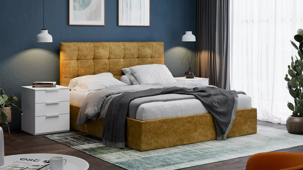 Кровать с ПМ «Порто» (с подъемным механизмом) с заглушиной Велюр Confetti Blue