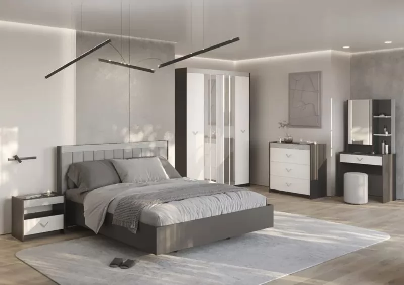 СТЕФАНИ Спальня №1, ЛДСП Графит-МДФ Серый софт/ЛДСП Рамух белый в Советском