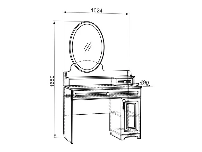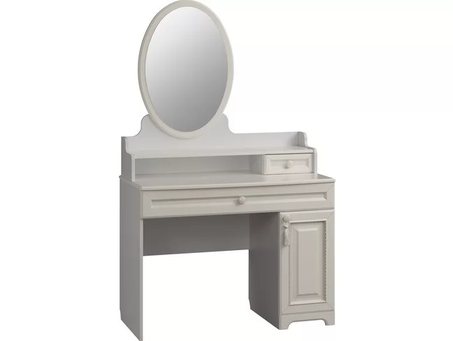 Трюмо из серии «Белла» – настоящая находка для истинных леди. Трюмо сочетает в себе утонченный дизайн, функциональность и удобство. Столешницу из МДФ украшает фрезеровка. Декоративная кисть на ручке окончательно подчеркнет изящество изделия.